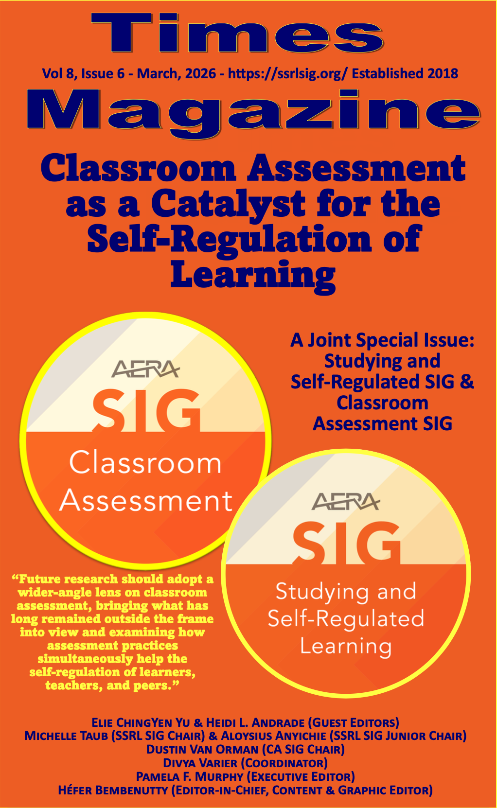 Please find here a joint special issue of Times Magazine, brought to you by the Studying and Self-Regulated Learning and the Classroom Assessment Special Interest Groups (SIGs) of the American Educational Research Association (AERA).